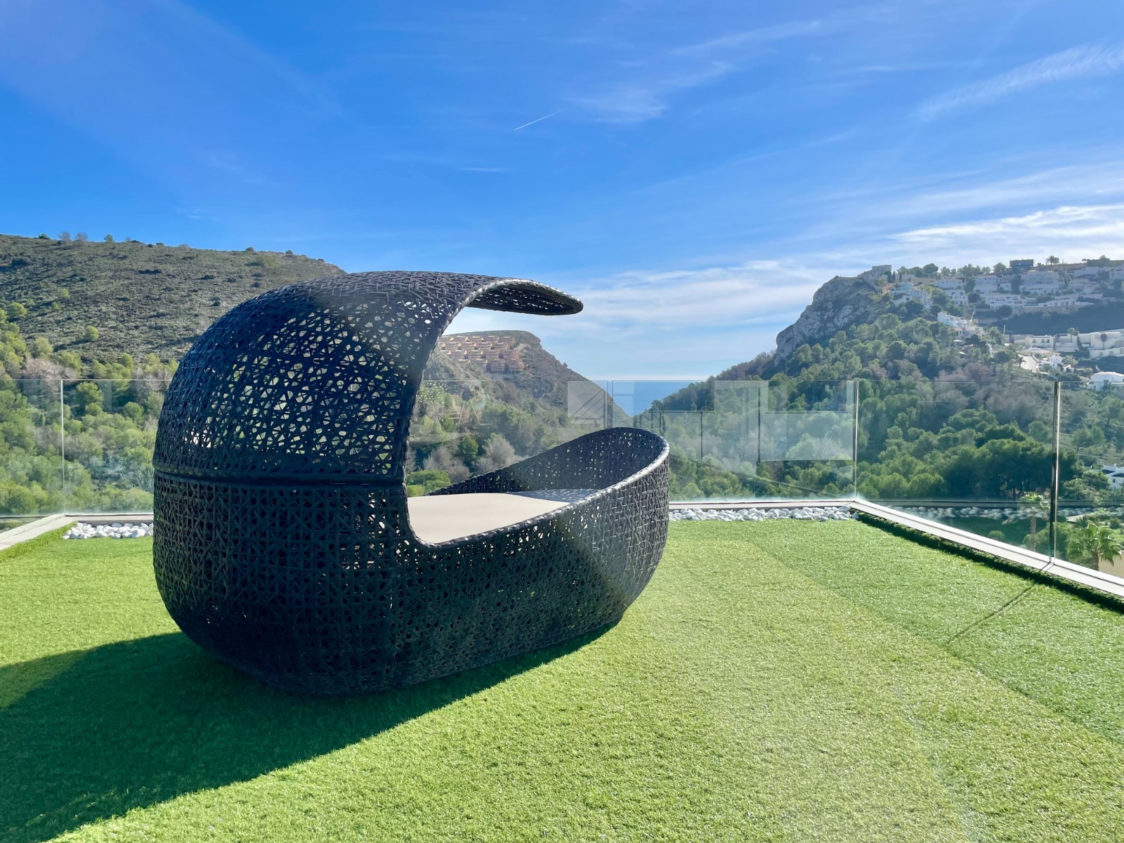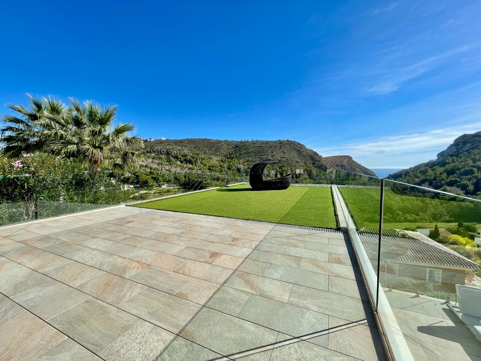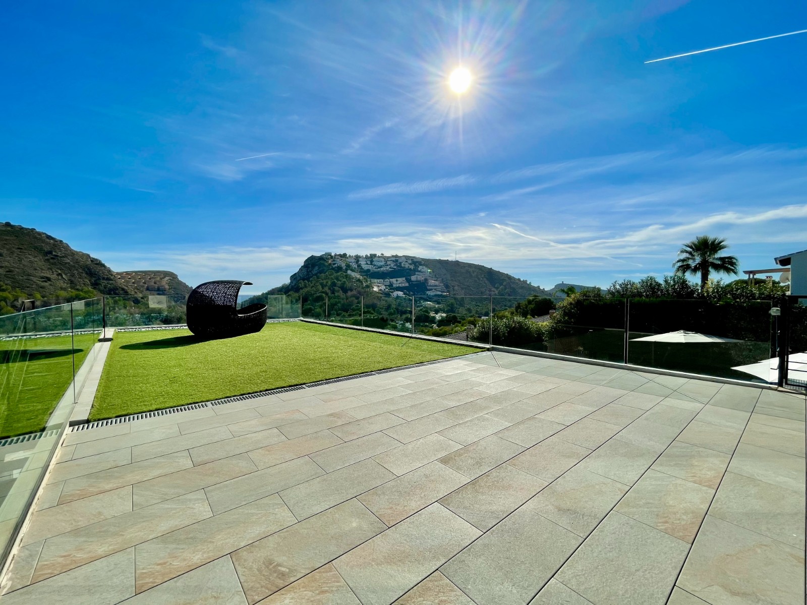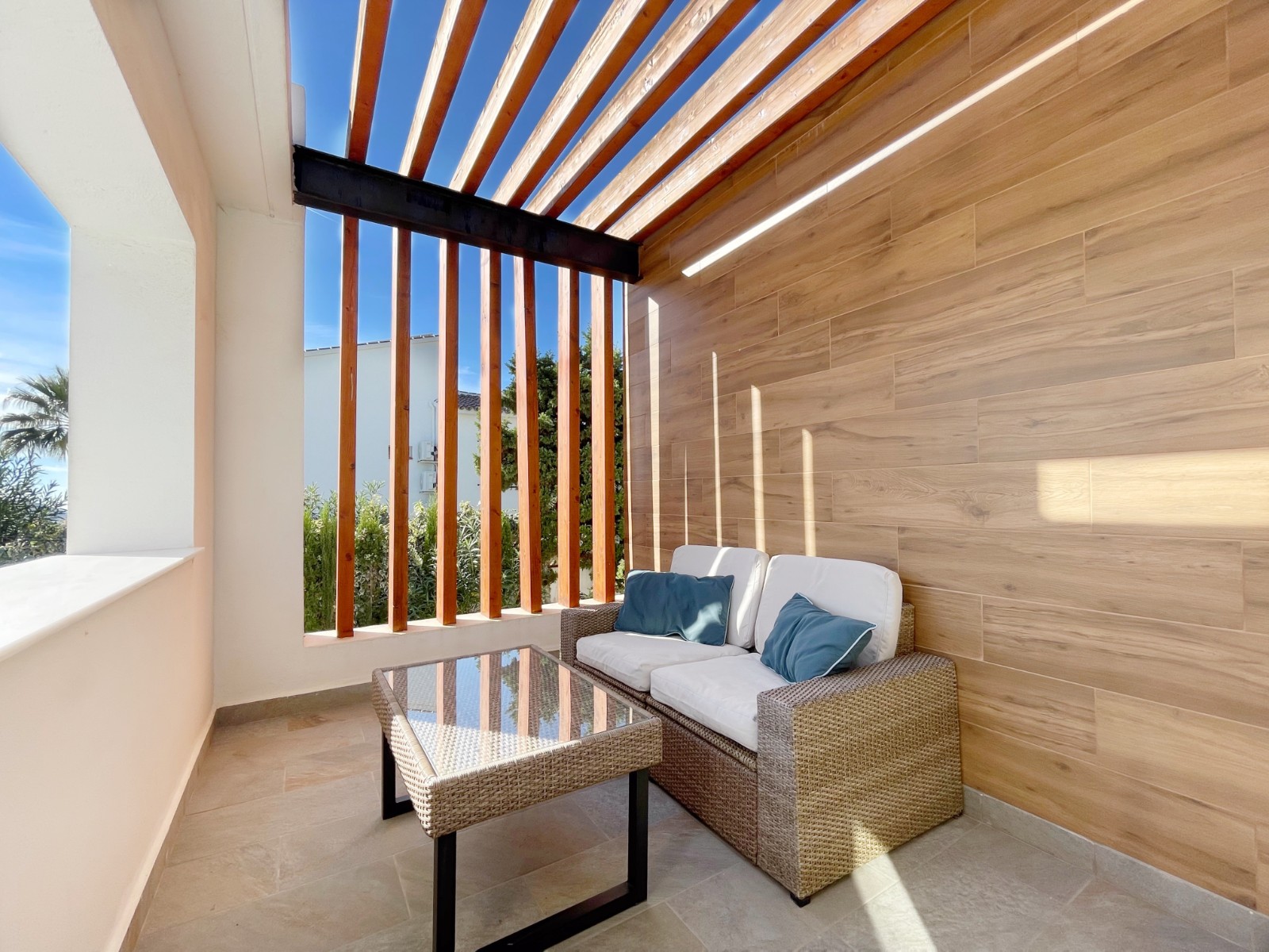 Una amplia terraza soleada con piscina privada ofrece el lugar perfecto para relajarse y disfrutar del maravilloso clima de la Costa Blanca. La piscina cuenta con calefacción y una ducha exterior, para que pueda nadar cómodamente durante todo el año. También hay una acogedora zona de barbacoa, ideal para cenas de verano con vistas al mar. El jardín está diseñado para facilitar su mantenimiento, lo que le da un aspecto limpio y cuidado. Además, la parcela ofrece suficiente espacio para aparcar y una cochera cerrada.