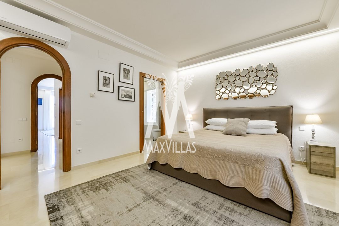 De hoofdslaapkamer met uitzicht op zee heeft ingebouwde kasten en een en-suite badkamer met een douche, bad en dubbele wastafel. Daarnaast zijn er twee en-suite slaapkamers, elk met een eigen badkamer.