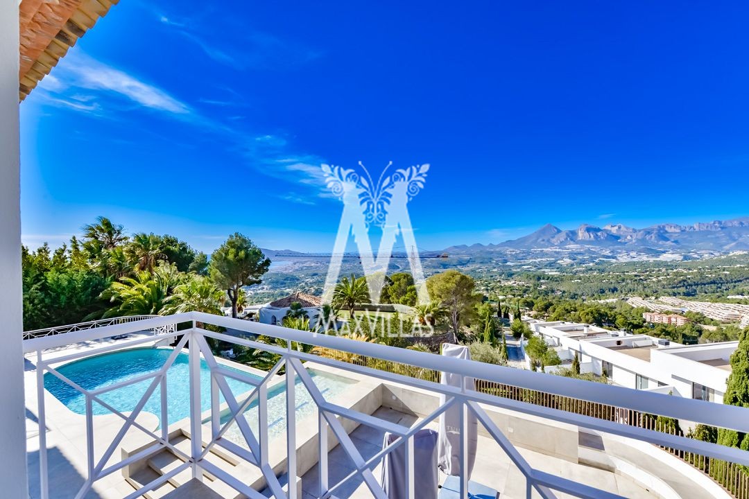 Als u de elegante hal binnenkomt, komt u via een massief houten deur in een lichte, open ruimte. De indrukwekkende woonkamer met open haard, eetkamer en designkeuken met kookeiland creëren een ideale setting voor entertainment. Vanuit elke hoek omlijsten de grote ramen het uitzonderlijke uitzicht op zee van de baai van Altea en de majestueuze Sierra Helada. De hoge plafonds met houten balken, de fijne materialen en de harmonie van elk detail weerspiegelen luxe op zijn best.