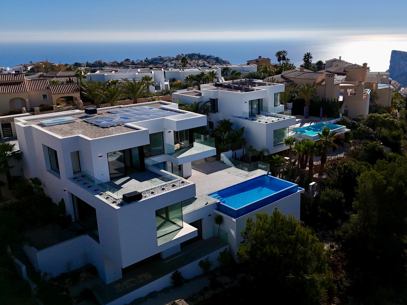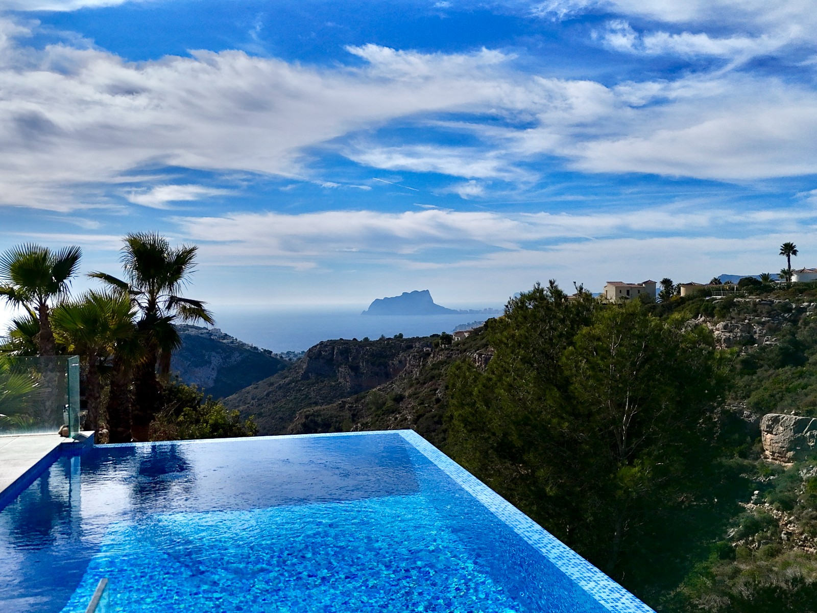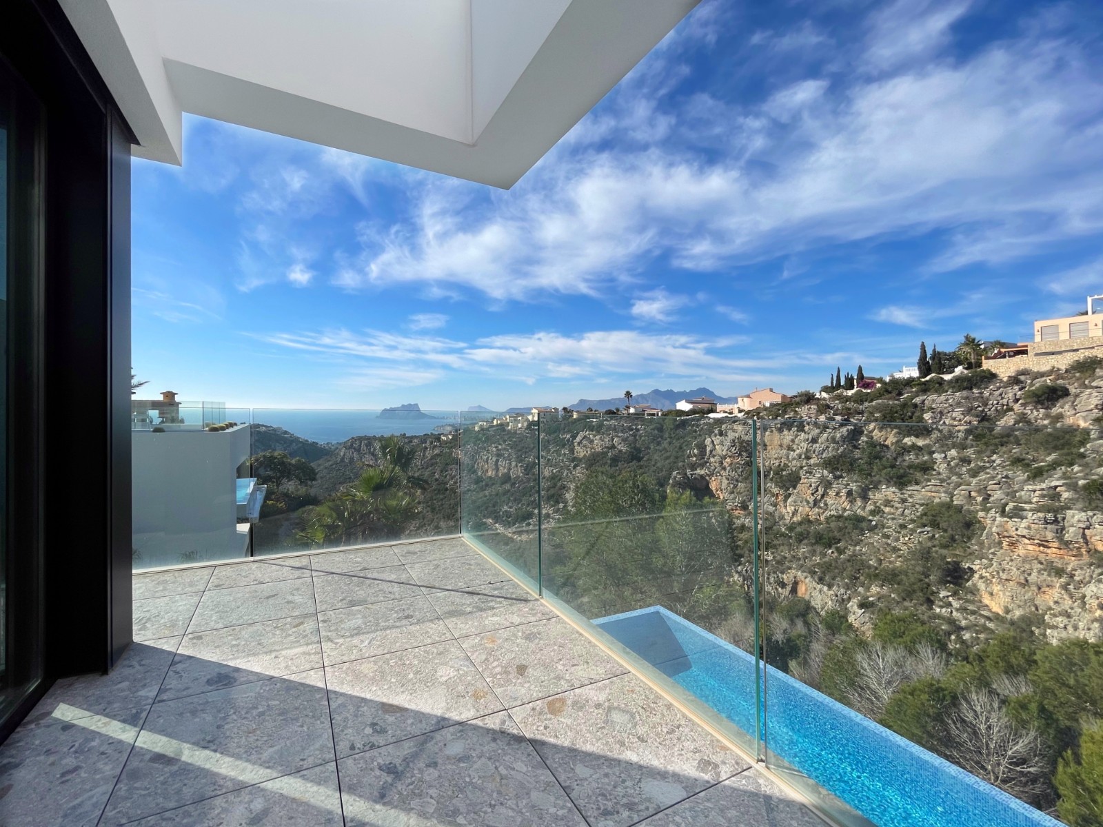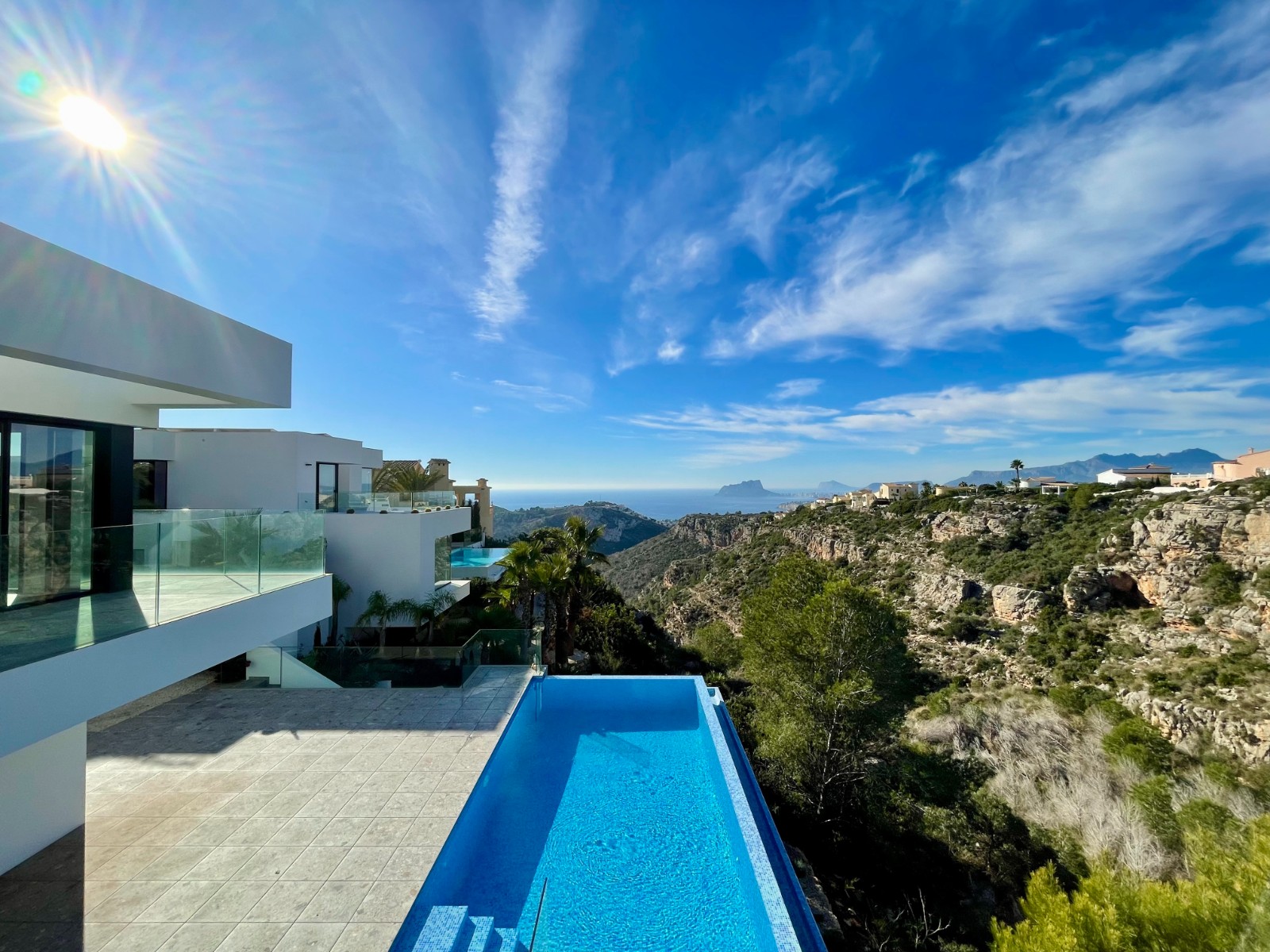 Panoramisch uitzicht op zee, vallei en Ifach-rotsInfinityzwembad met zeezichtOnderhoudsvriendelijke mediterrane tuinVloerverwarming en geïntegreerde airconditioningGrote raampartijen voor maximaal uitzicht