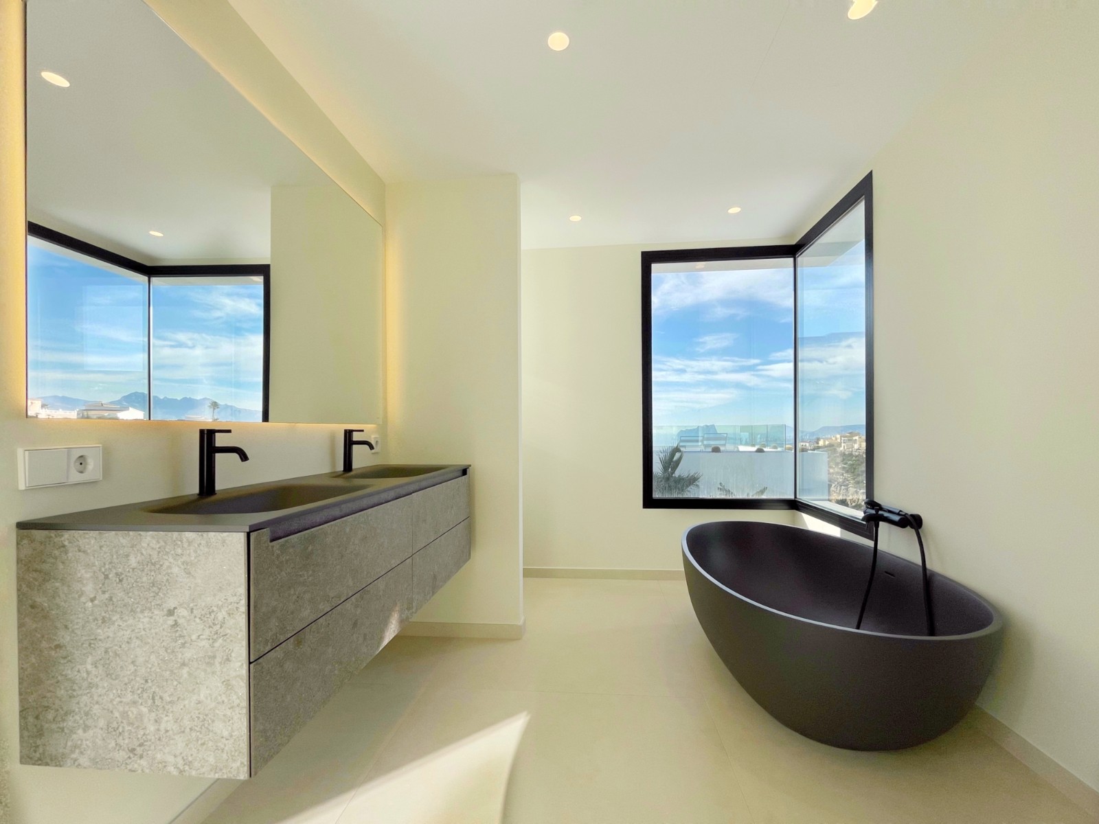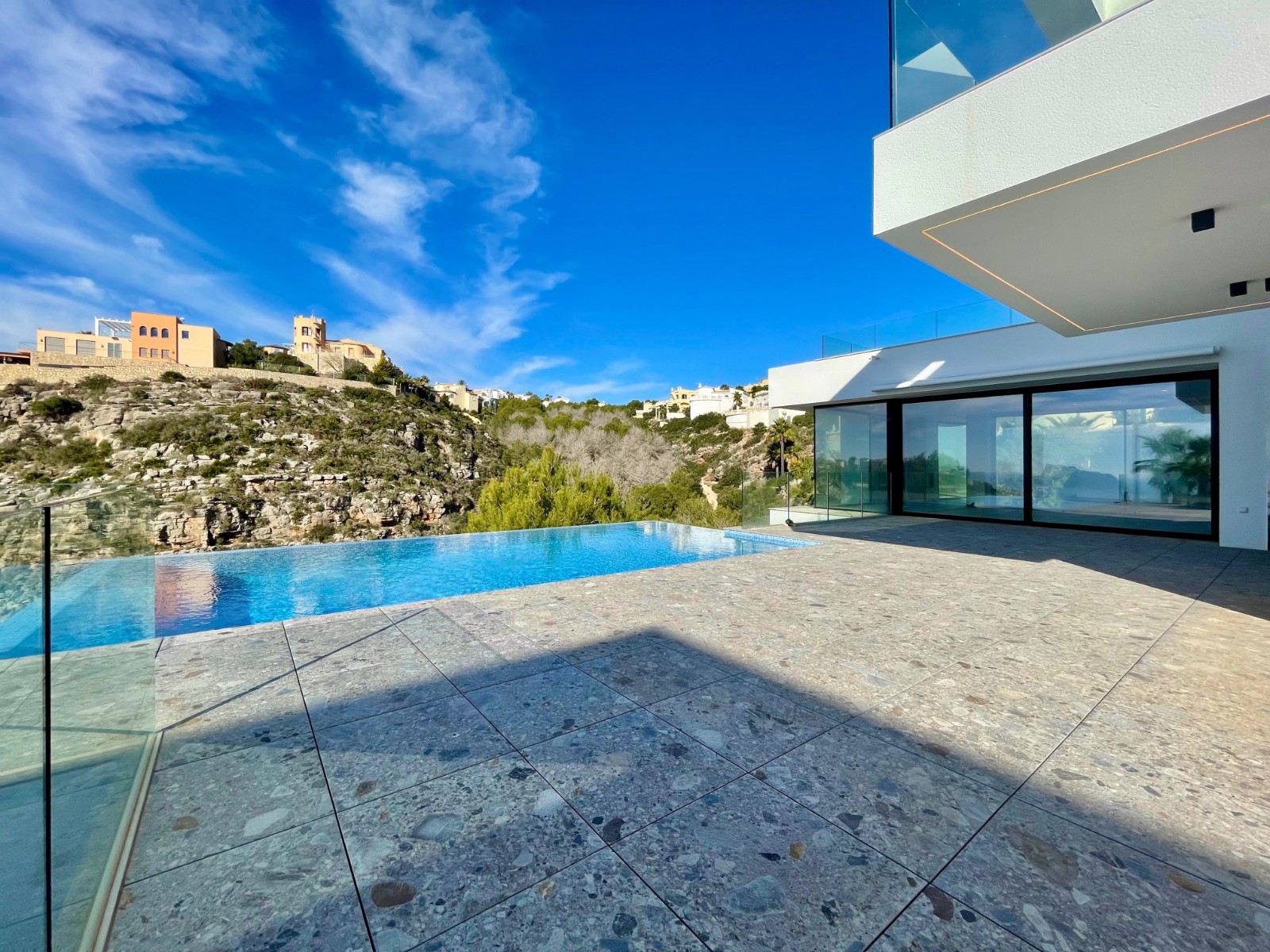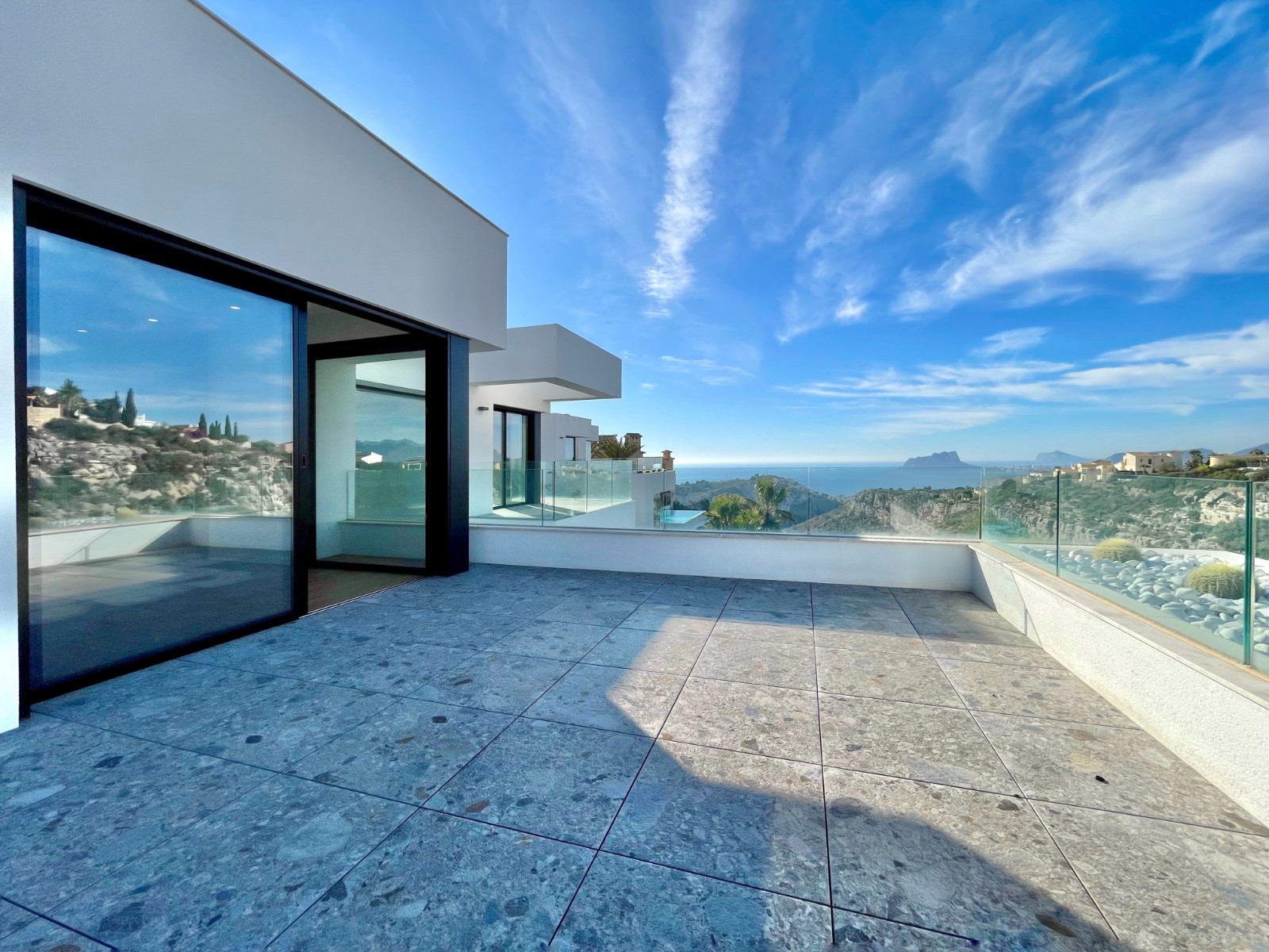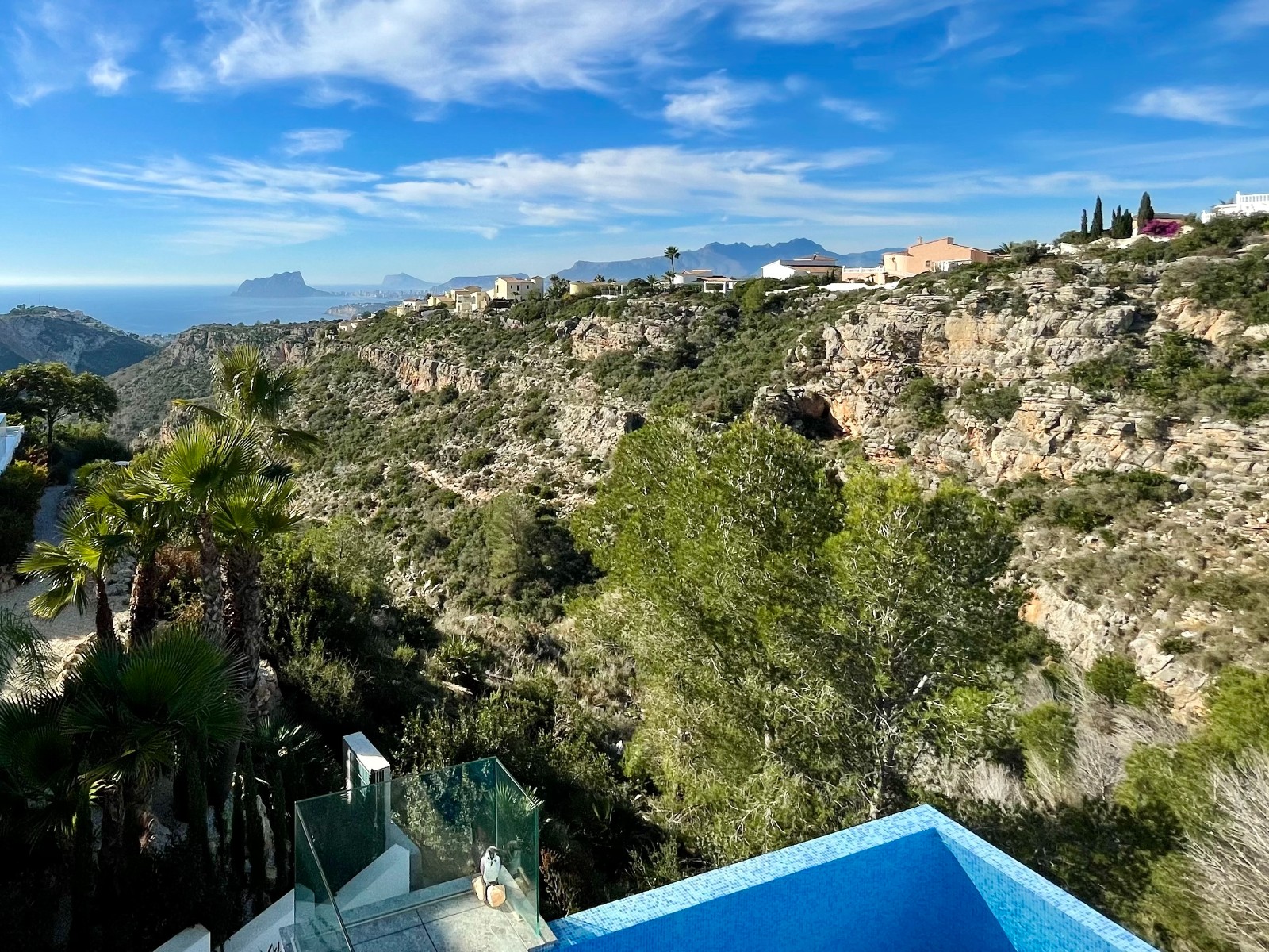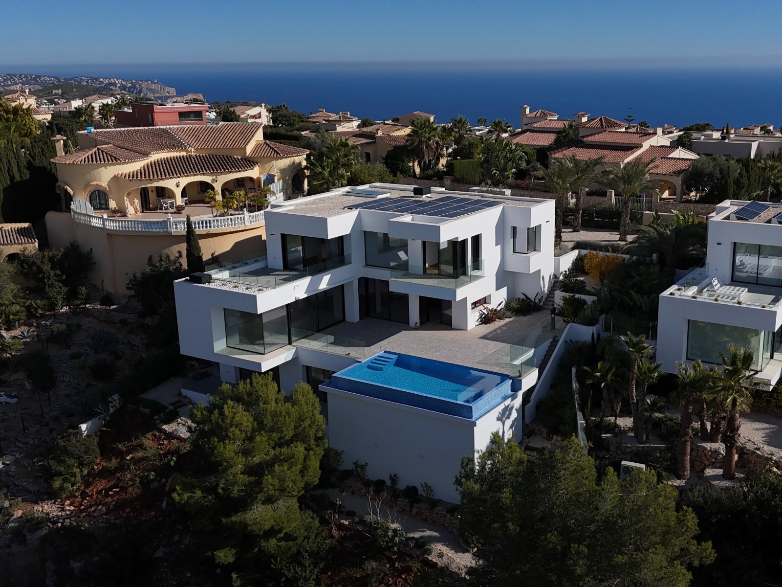 Panoramisch uitzicht op zee, vallei en Ifach-rotsInfinityzwembad met zeezichtOnderhoudsvriendelijke mediterrane tuinVloerverwarming en geïntegreerde airconditioningGrote raampartijen voor maximaal uitzicht