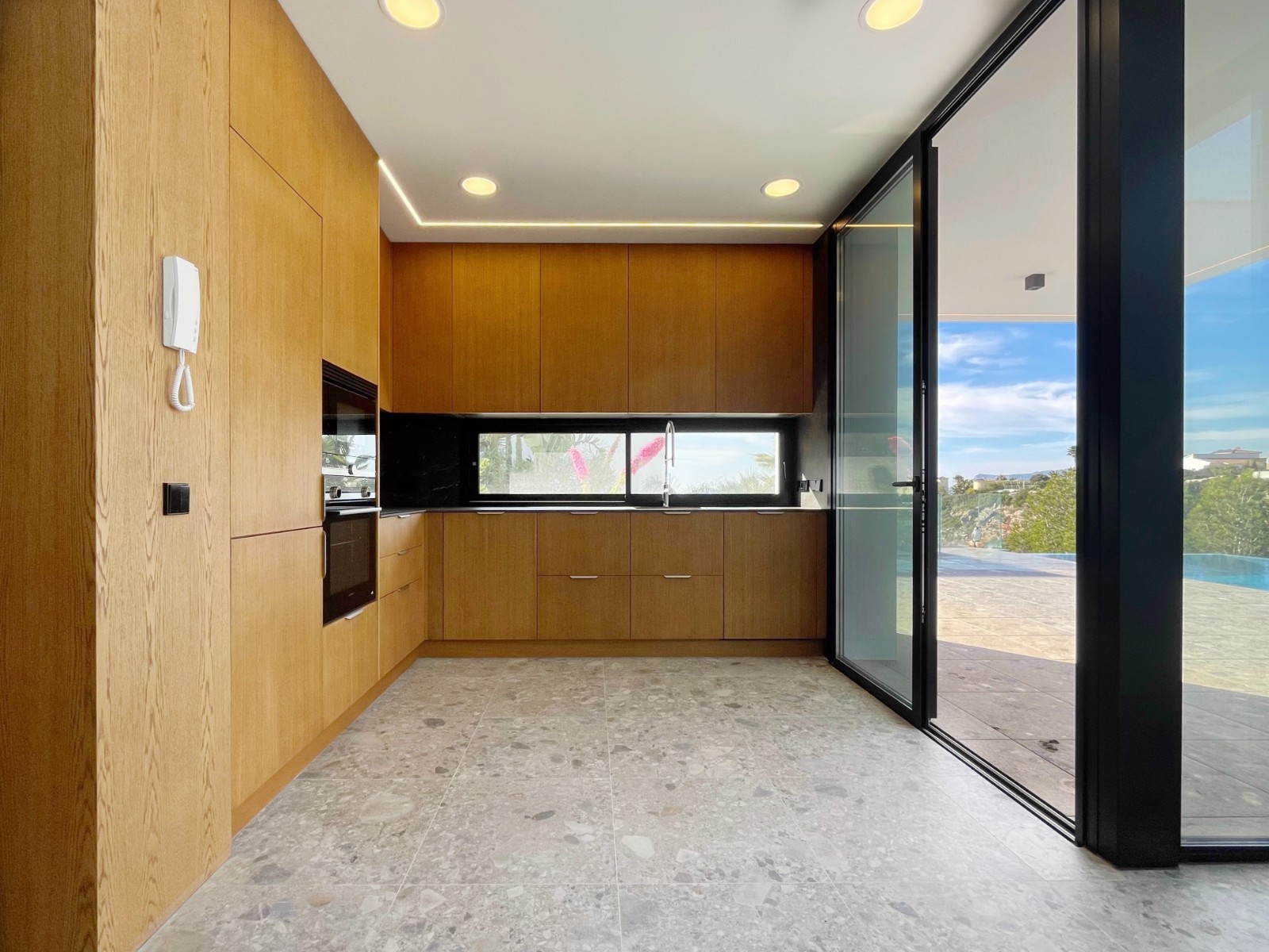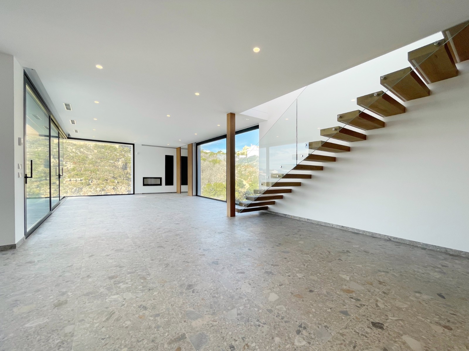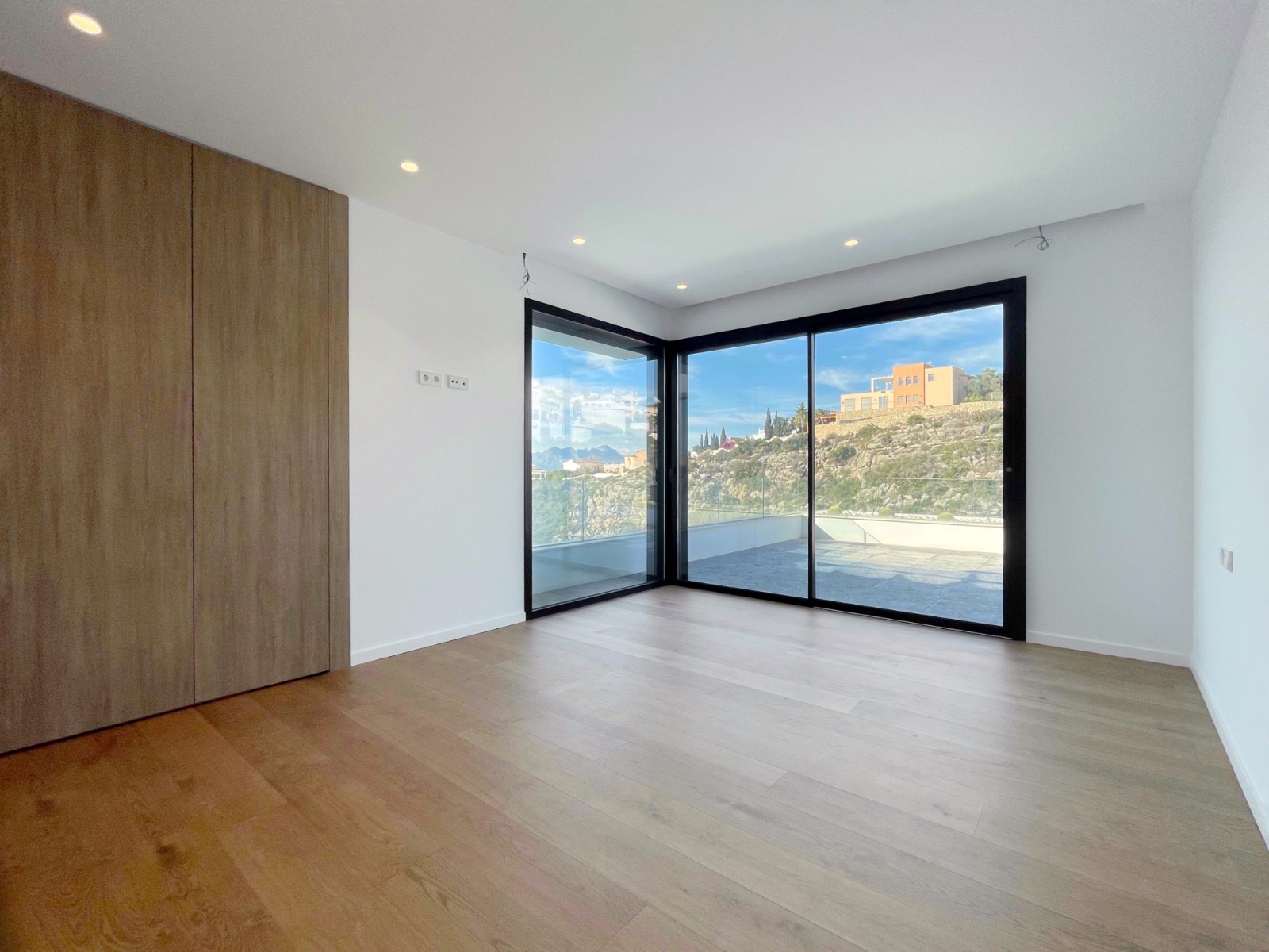 Prachtige moderne villa in de residentiële wijk Magnolias, op slechts 10 minuten rijden van Moraira. Deze recent gebouwde nieuwbouwvilla is afgewerkt met hoogwaardige materialen en uitgerust met de nieuwste moderne technieken. Een woning die absolute luxe en comfort biedt, met volledige privacy en een adembenemend panoramisch uitzicht op de Middellandse Zee, de groene vallei en de iconische Ifach-rots – vanuit vrijwel elke ruimte in het huis.De villa staat op een royaal perceel van 1.100 m² en beschikt over 441 m² zorgvuldig ontworpen woonoppervlak, verdeeld over meerdere verdiepingen en aangevuld met meer dan 150 m² zonovergoten terrassen.