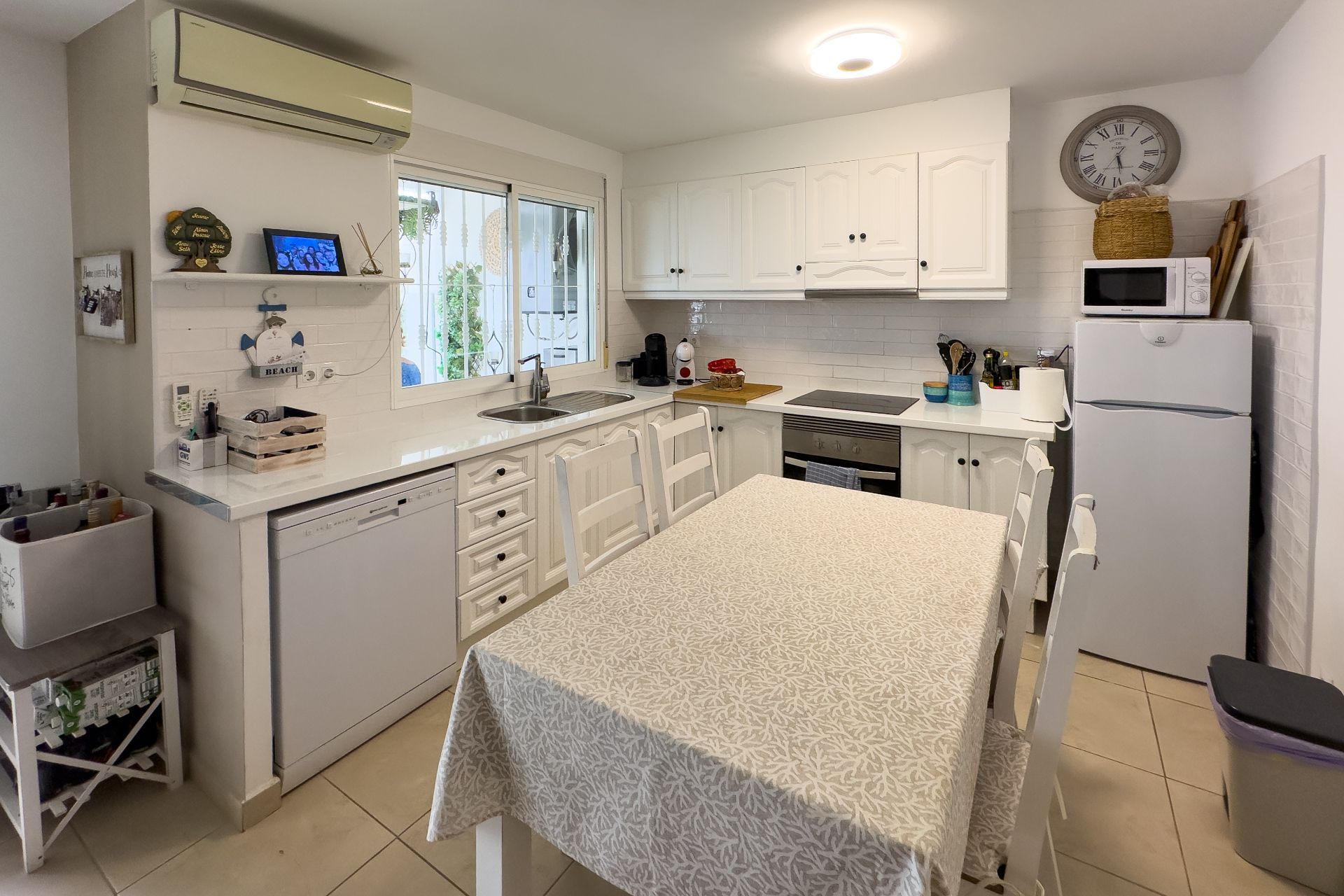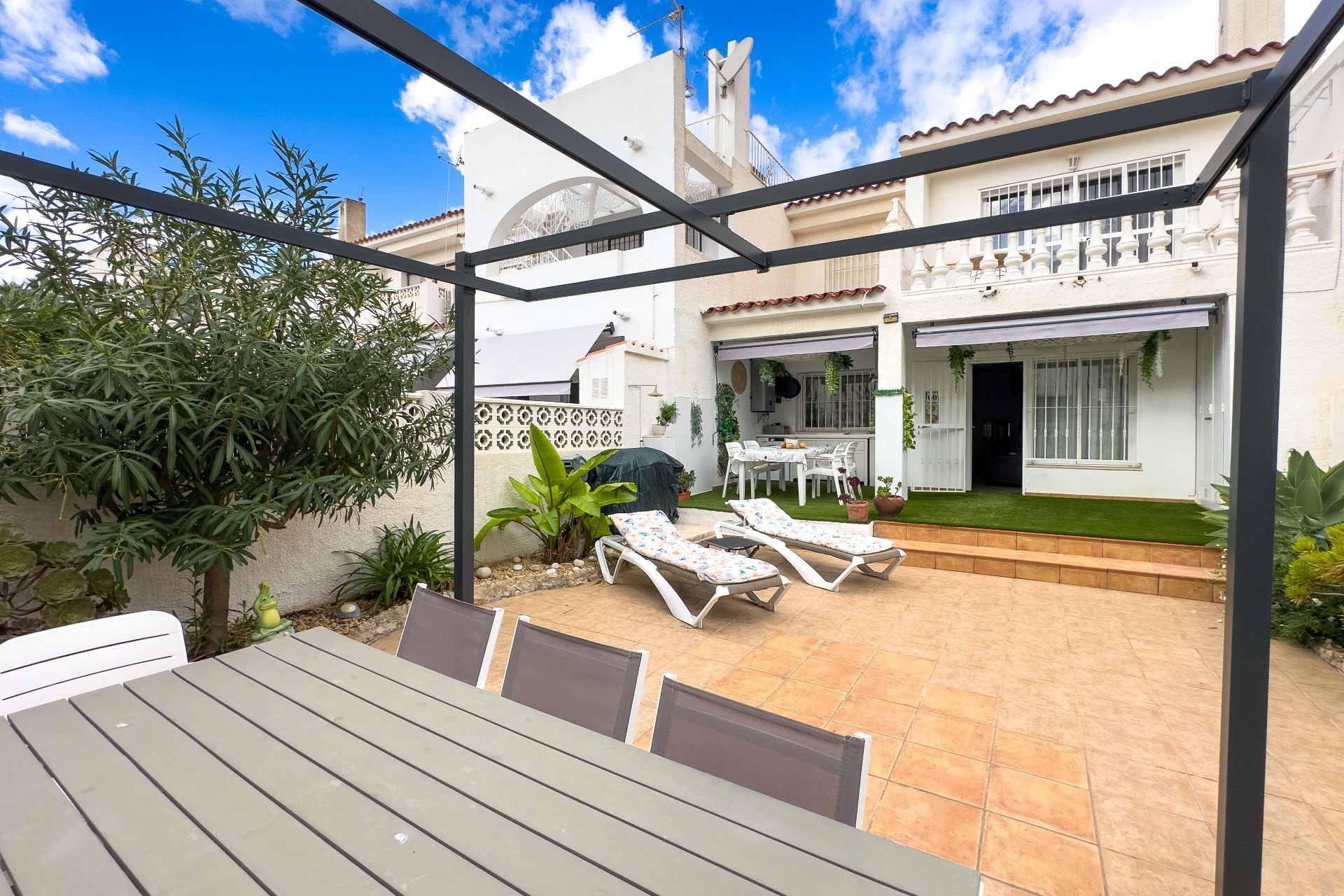 Bij binnenkomst wordt u begroet door een gastvrije open woonkamer en keuken, een moderne en functionele ruimte die direct uitkomt op de ruime privétuin, ideaal om het hele jaar door te genieten van het mediterrane klimaat. Buiten vindt u een zomerkeuken, een berging en een ruime ruimte om te ontspannen, te zonnen of te genieten van maaltijden met familie en vrienden.