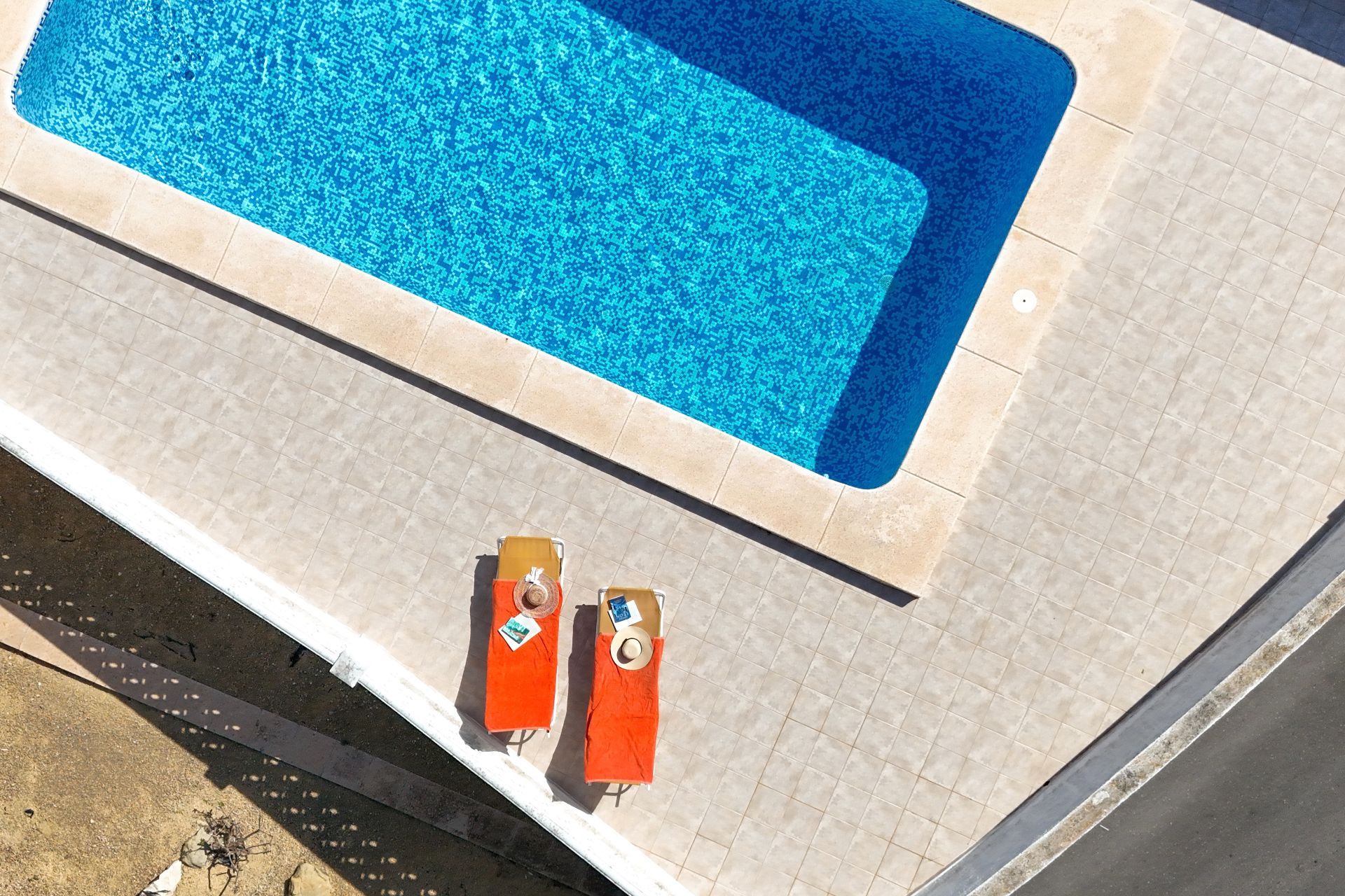 Het royale zwembad van 4,5 x 9 m met eigen buitendouche biedt de perfecte plek om te ontspannen en af te koelen tijdens warme zomerdagen. Dankzij de ligging van het huis kunt u de hele dag van de zon genieten.