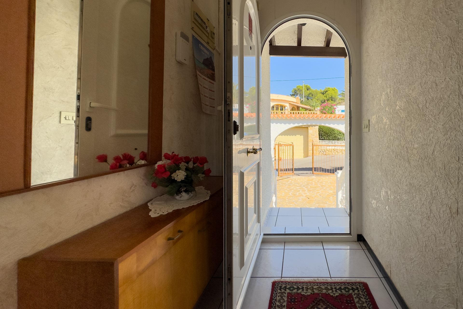 De bovenverdieping baadt in natuurlijk licht. Bij binnenkomst in de uitnodigende hal vindt u links een ruime woon- en eetkamer en rechts twee grote slaapkamers met een complete badkamer met douche. De aparte keuken, tegenover de hal, komt uit op een overdekt terras met uitzicht op Canuta de Ifach en Maryvilla – de perfecte plek voor een ontbijt bij zonsopgang. Vanaf hier leidt een trap naar een klein terras met zee- en bergzicht, ideaal om het hele jaar door van het mediterrane klimaat te genieten en een vloeiende overgang tussen binnen en buiten te creëren.