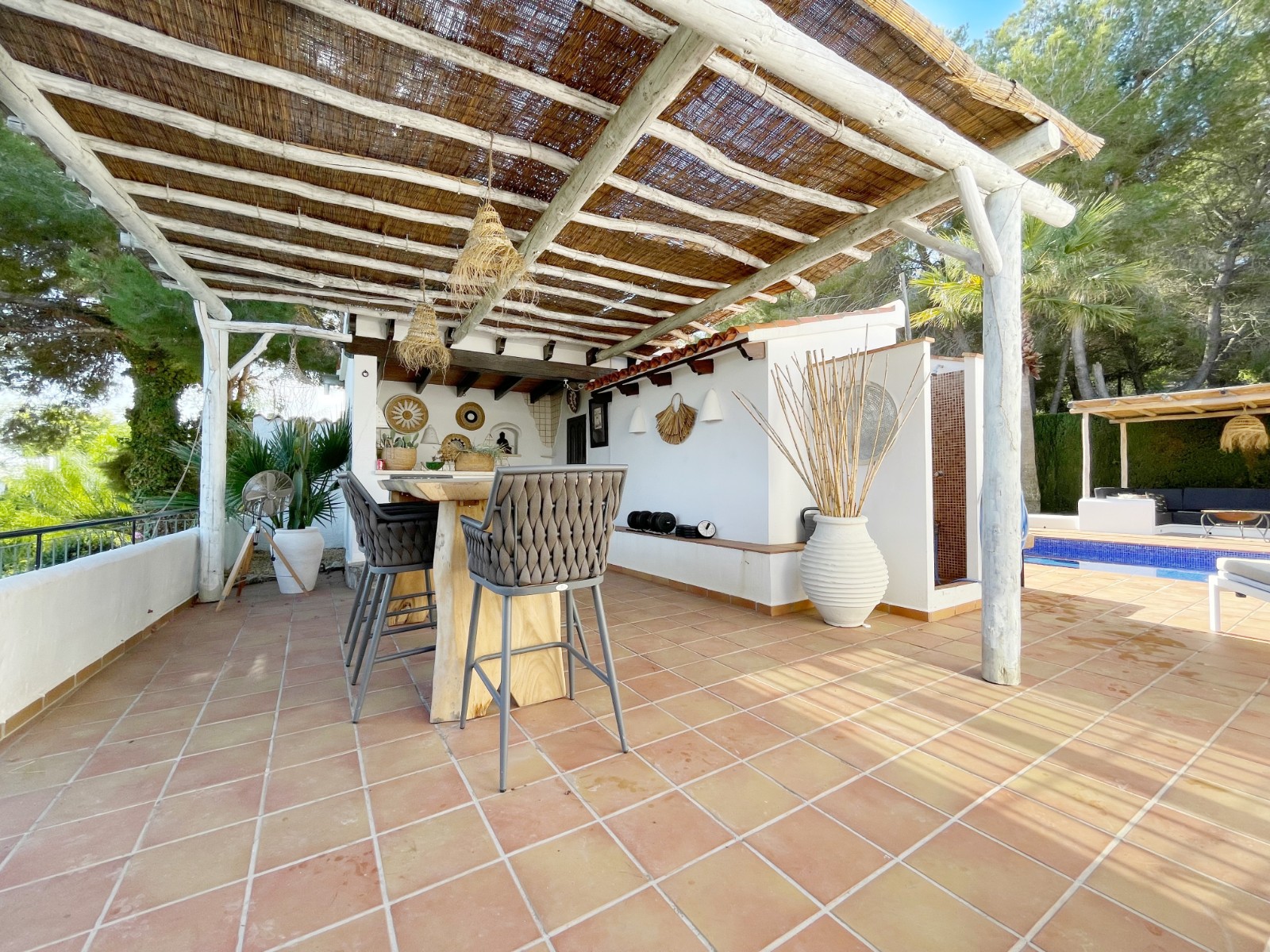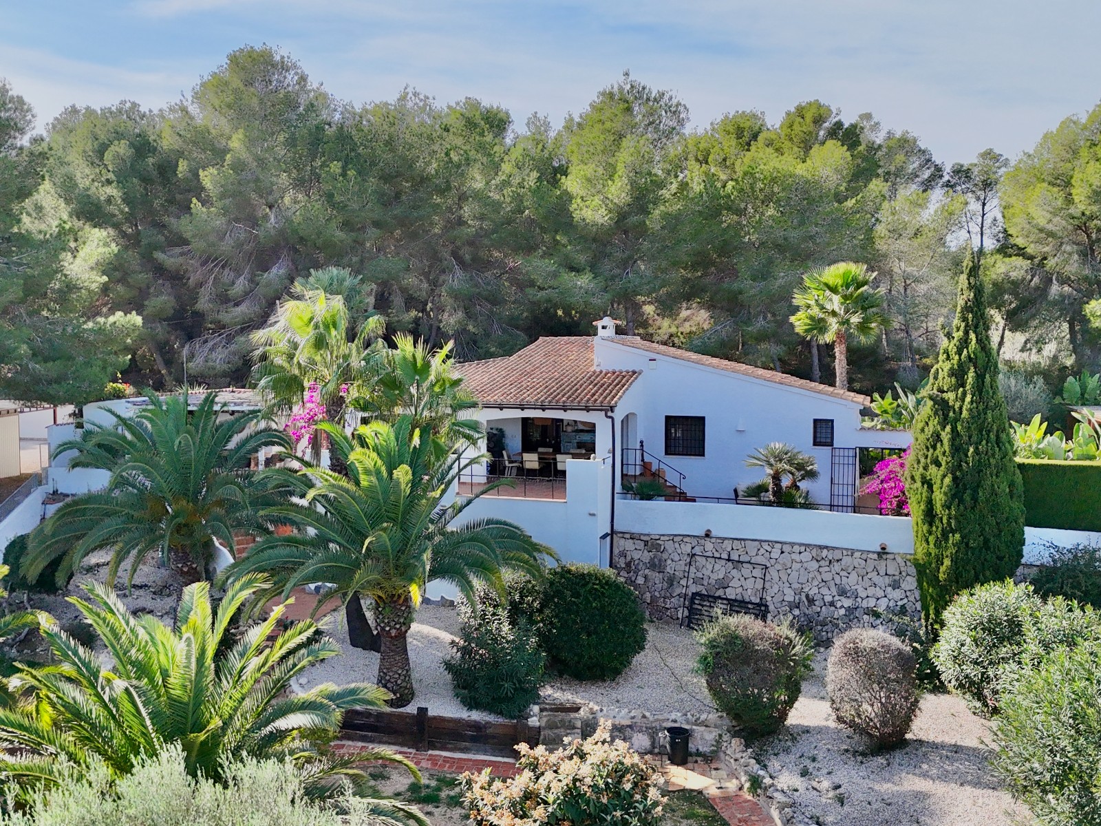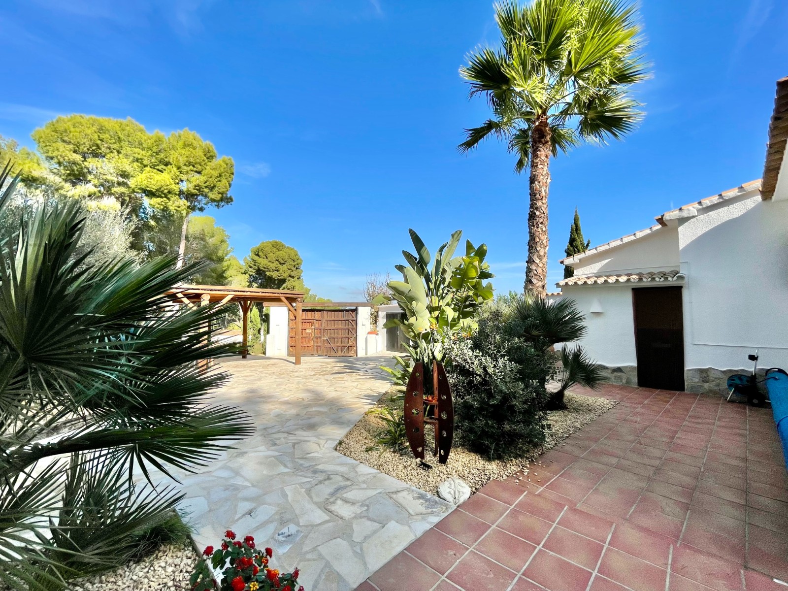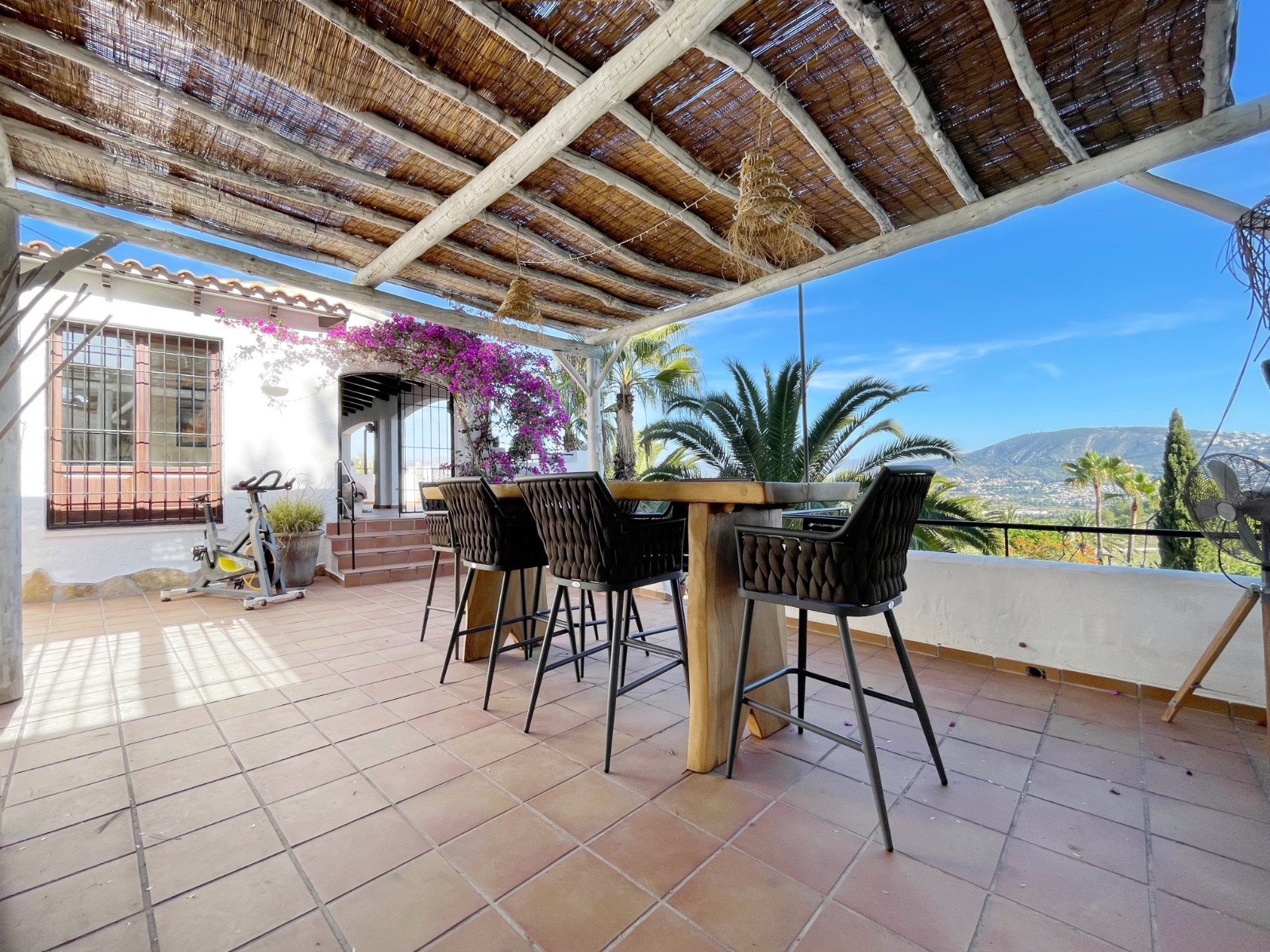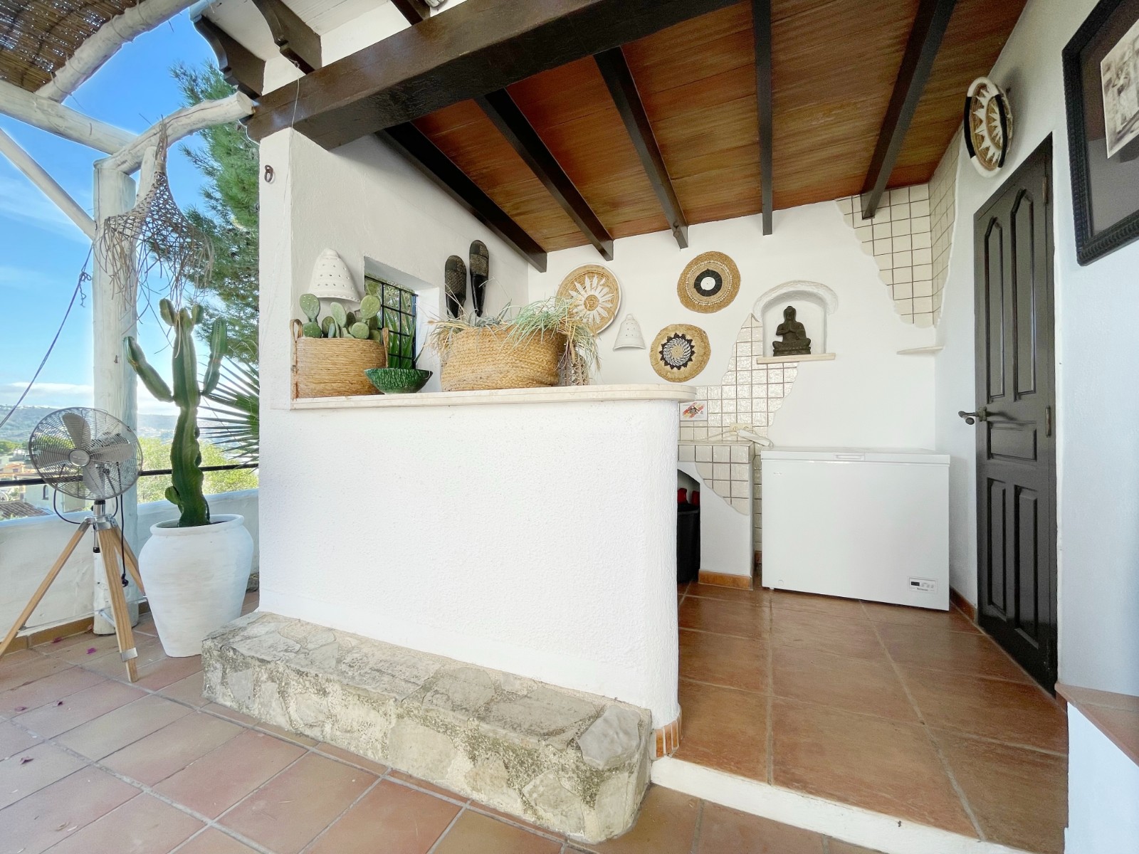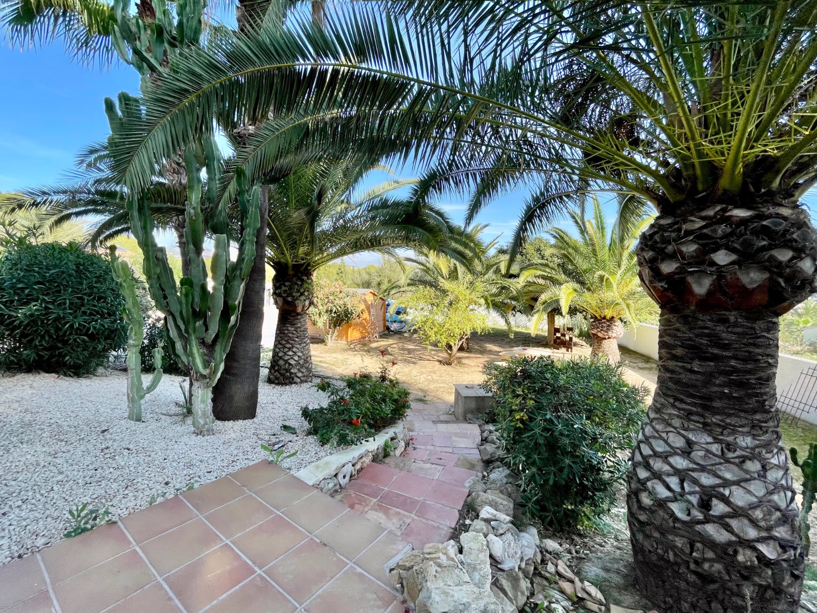 Gezellige villa gelegen in een rustig gedeelte van de gewilde wijk Benimeit van Moraira. Rondom de woning vinden we, naast natuurlijk het zwembadterras, diverse terrassen met zitjes en loungehoeken in zon en schaduw, waarvan meerdere ook voorzien zijn van schitterende pergola’s. De tuin is heel mooi aangelegd en schept een hele fijne sfeer, de mooie uitlichting doet daar ’s avonds nog een schepje bovenop. Tevens loopt men vanuit de schitterende houten toegangspoort aan de achterzijde zo direct de natuur tussen Moraira en Teulada in, tegelijkertijd zit men ook in maar 6 autominuutjes in hartje Moraira centrum . Er bestaat de mogelijkheid de woning verder uit te breiden en zelfs het splitsen van het kavel in 2 grondstukken behoort tot de mogelijkheden.
