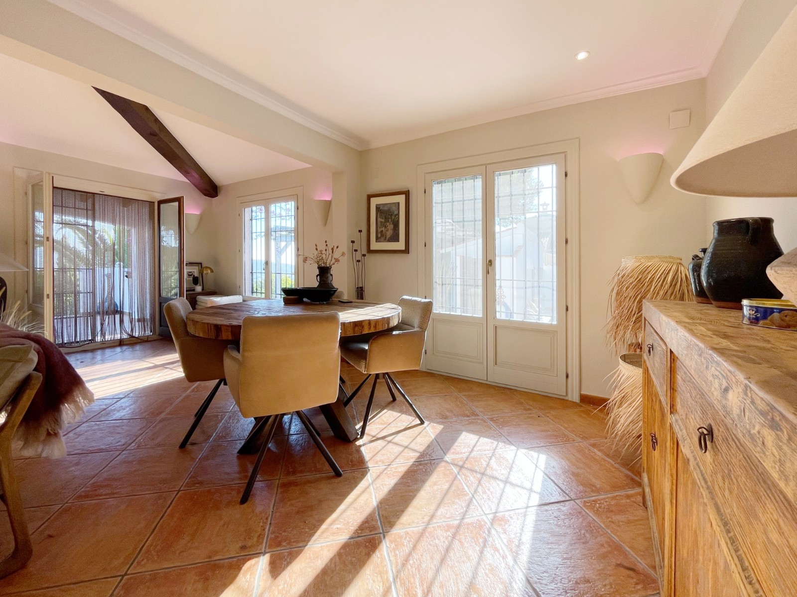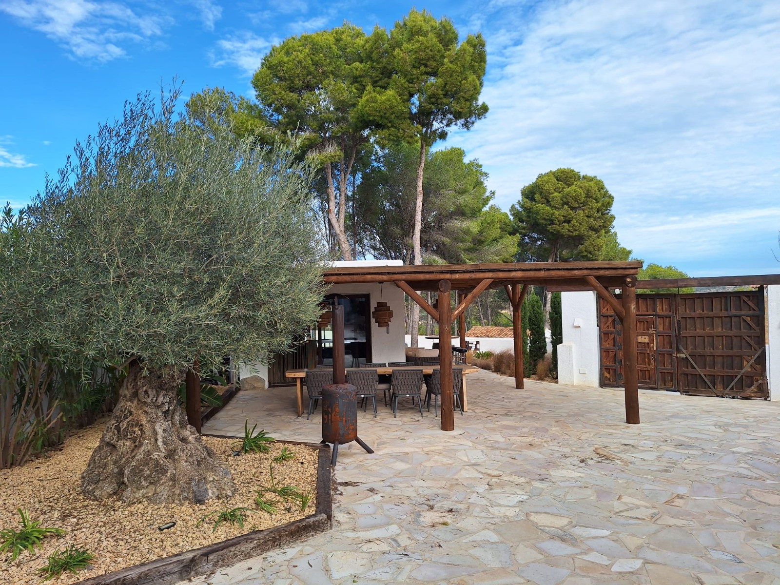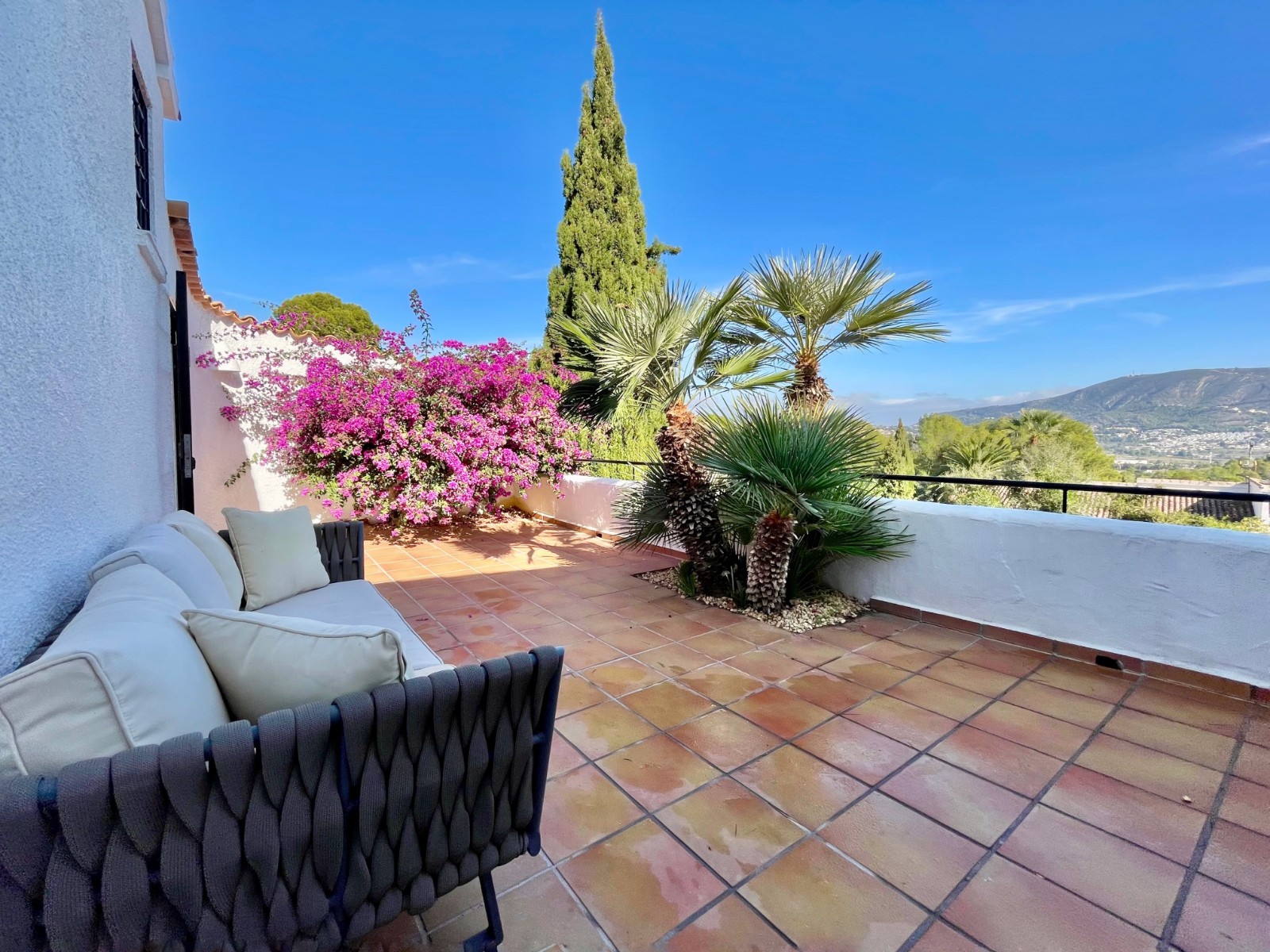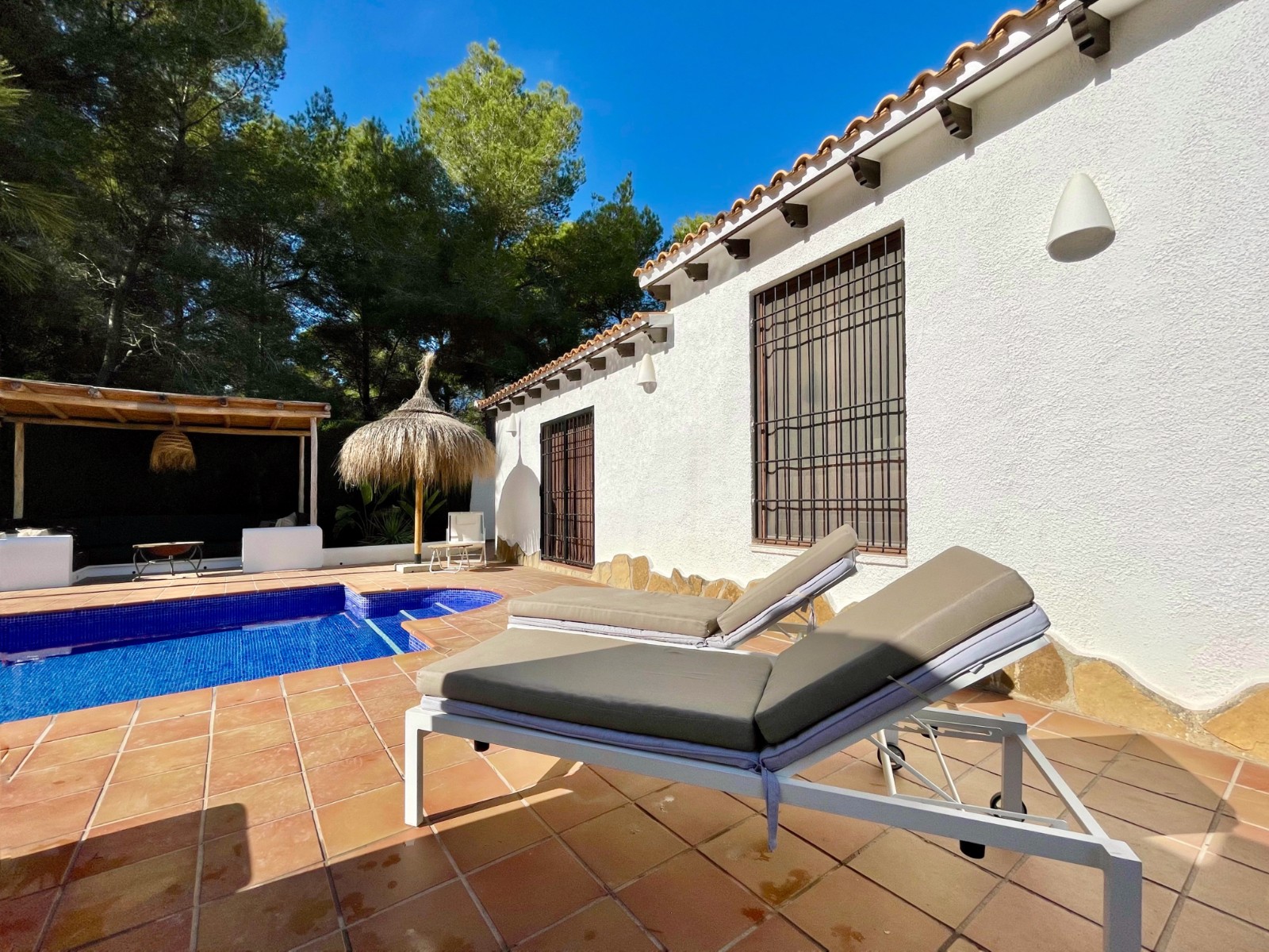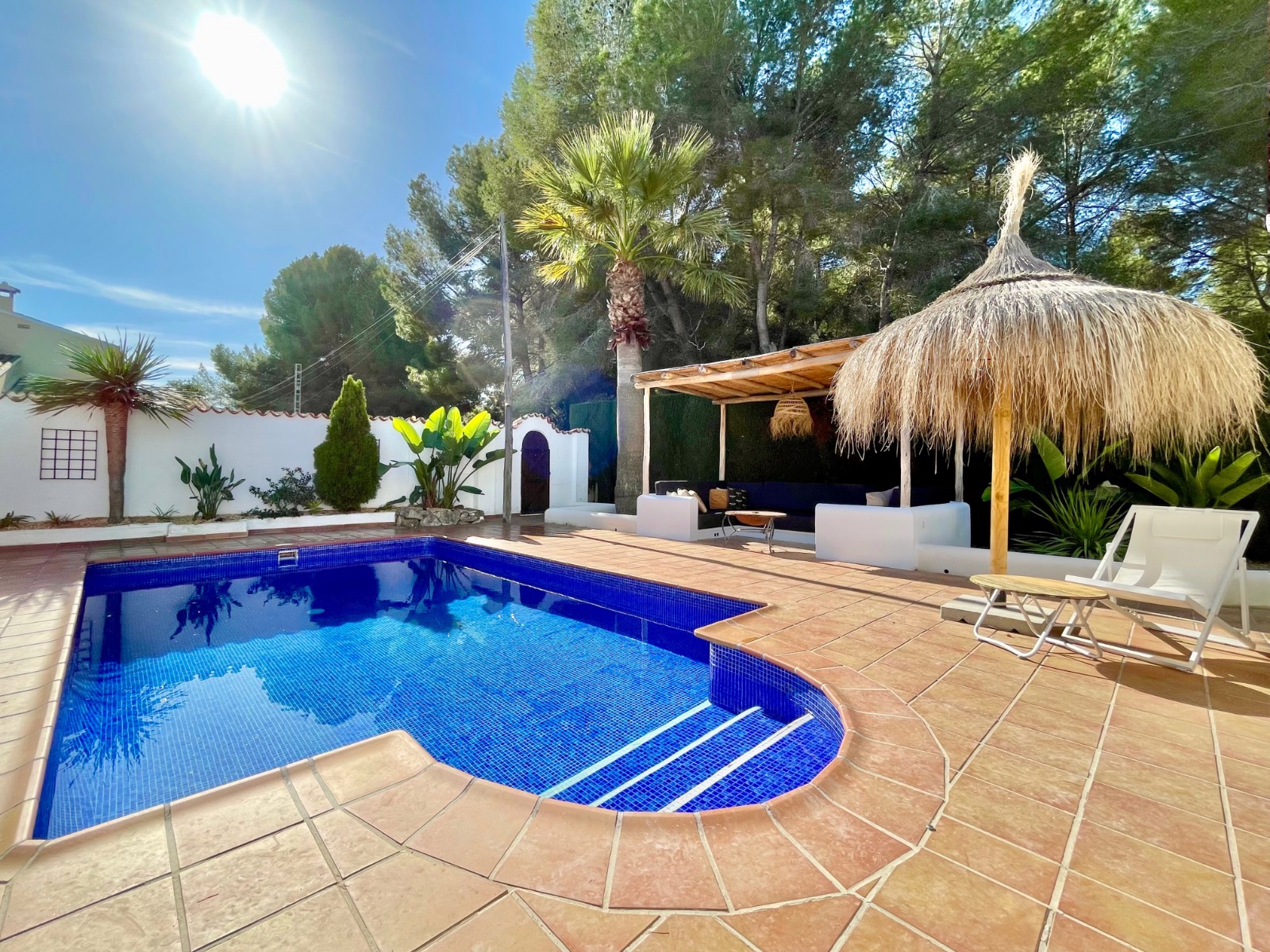Gezellige villa gelegen in een rustig gedeelte van de gewilde wijk Benimeit van Moraira. Rondom de woning vinden we, naast natuurlijk het zwembadterras, diverse terrassen met zitjes en loungehoeken in zon en schaduw, waarvan meerdere ook voorzien zijn van schitterende pergola’s. De tuin is heel mooi aangelegd en schept een hele fijne sfeer, de mooie uitlichting doet daar ’s avonds nog een schepje bovenop. Tevens loopt men vanuit de schitterende houten toegangspoort aan de achterzijde zo direct de natuur tussen Moraira en Teulada in, tegelijkertijd zit men ook in maar 6 autominuutjes in hartje Moraira centrum . Er bestaat de mogelijkheid de woning verder uit te breiden en zelfs het splitsen van het kavel in 2 grondstukken behoort tot de mogelijkheden.