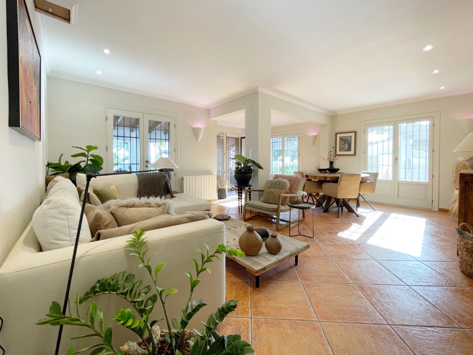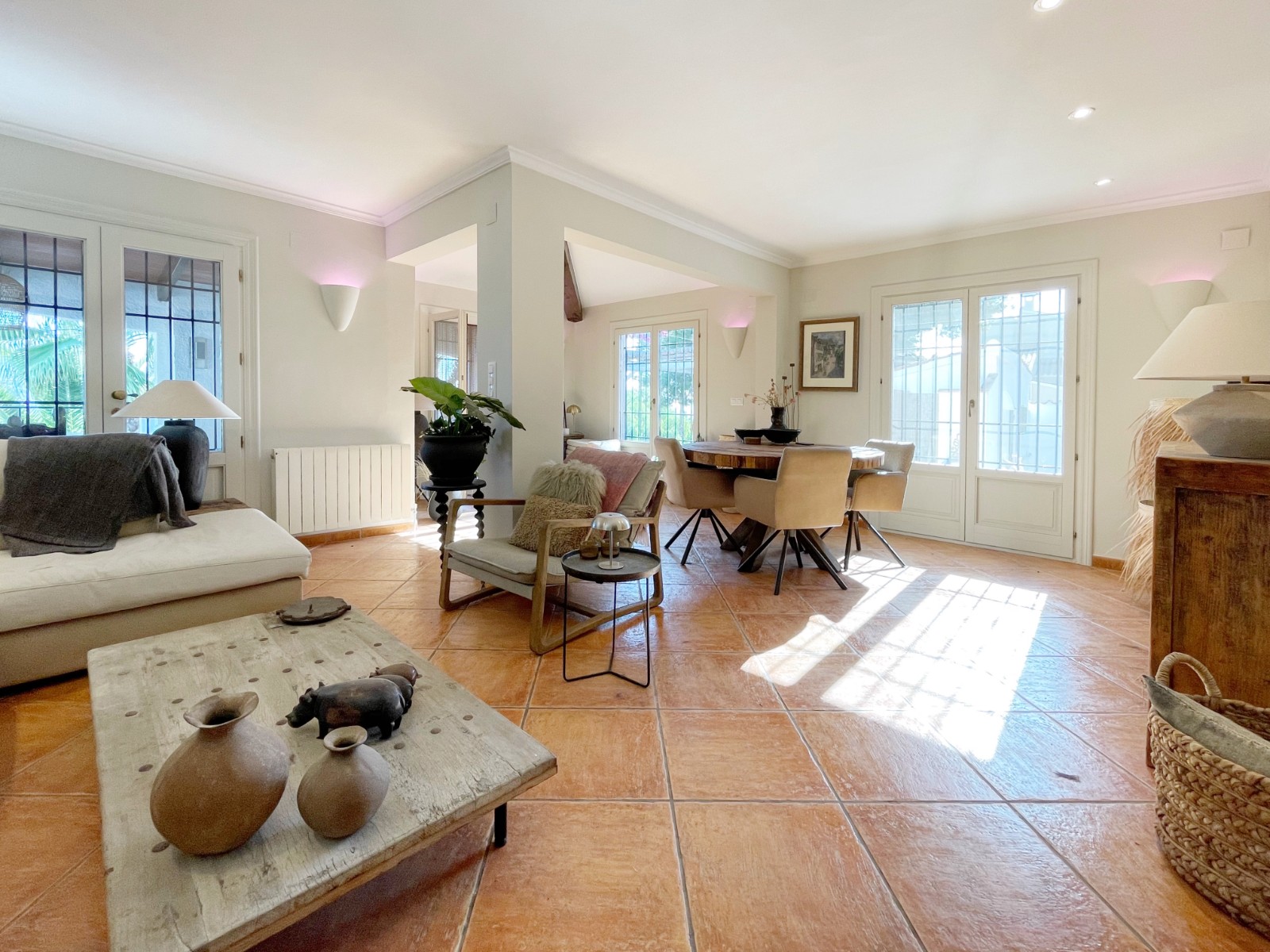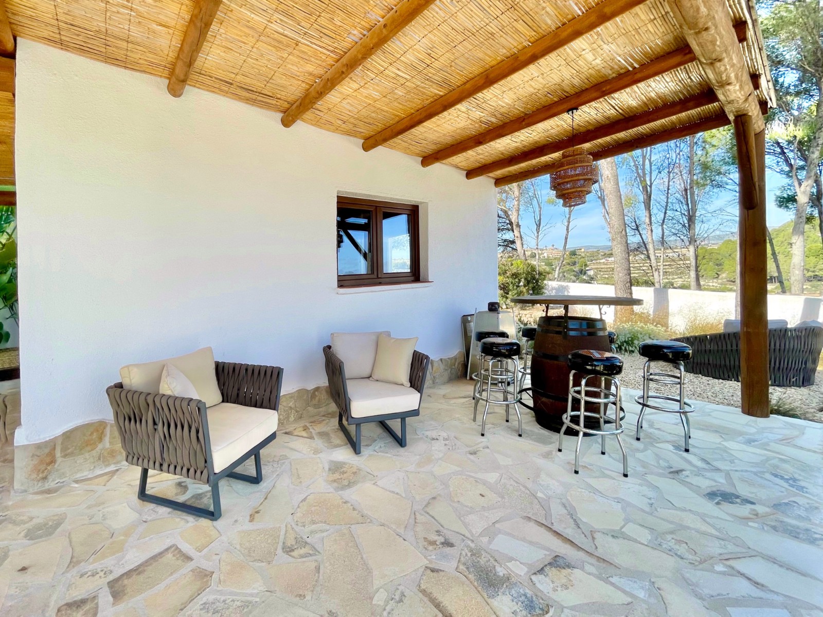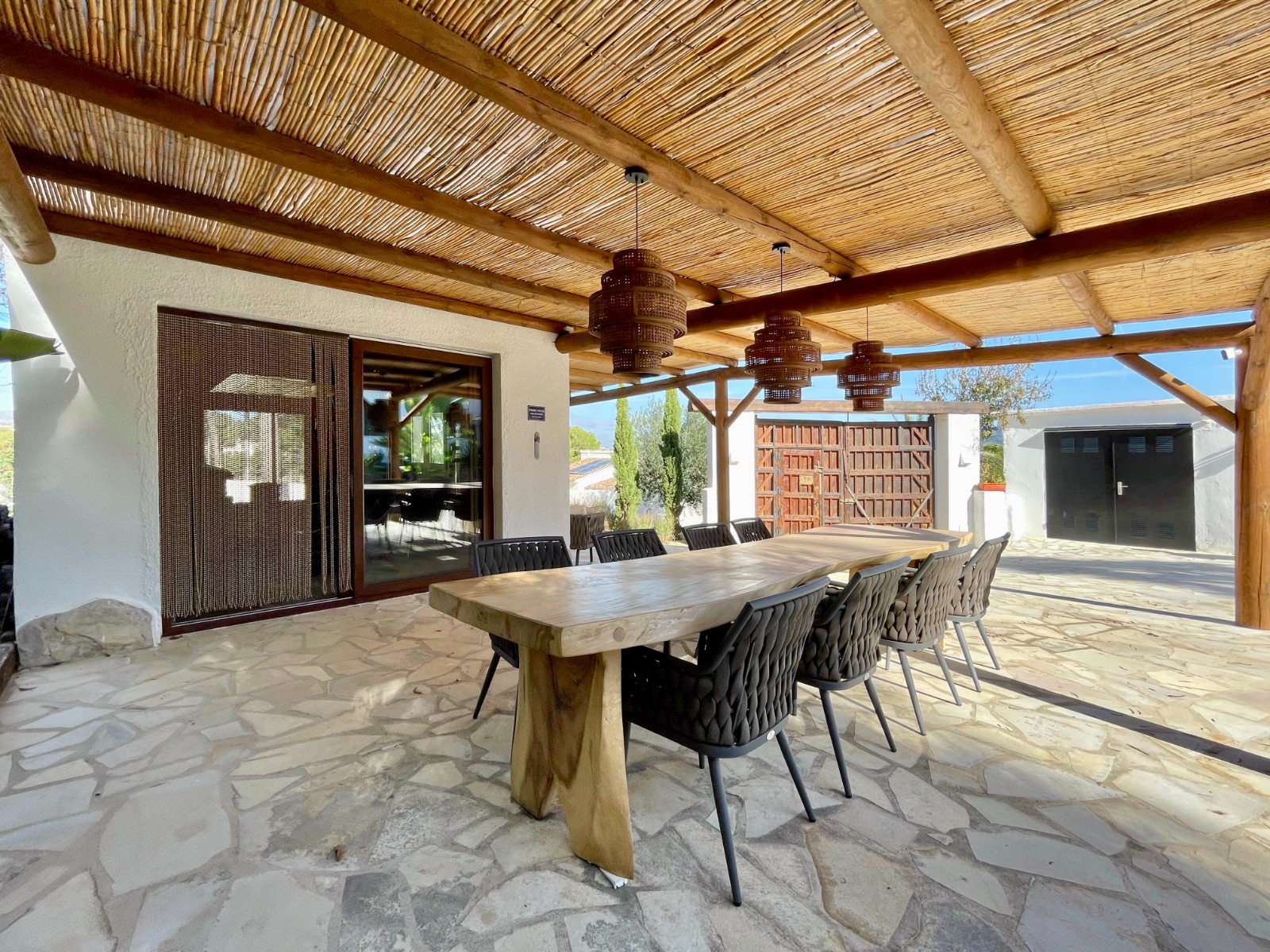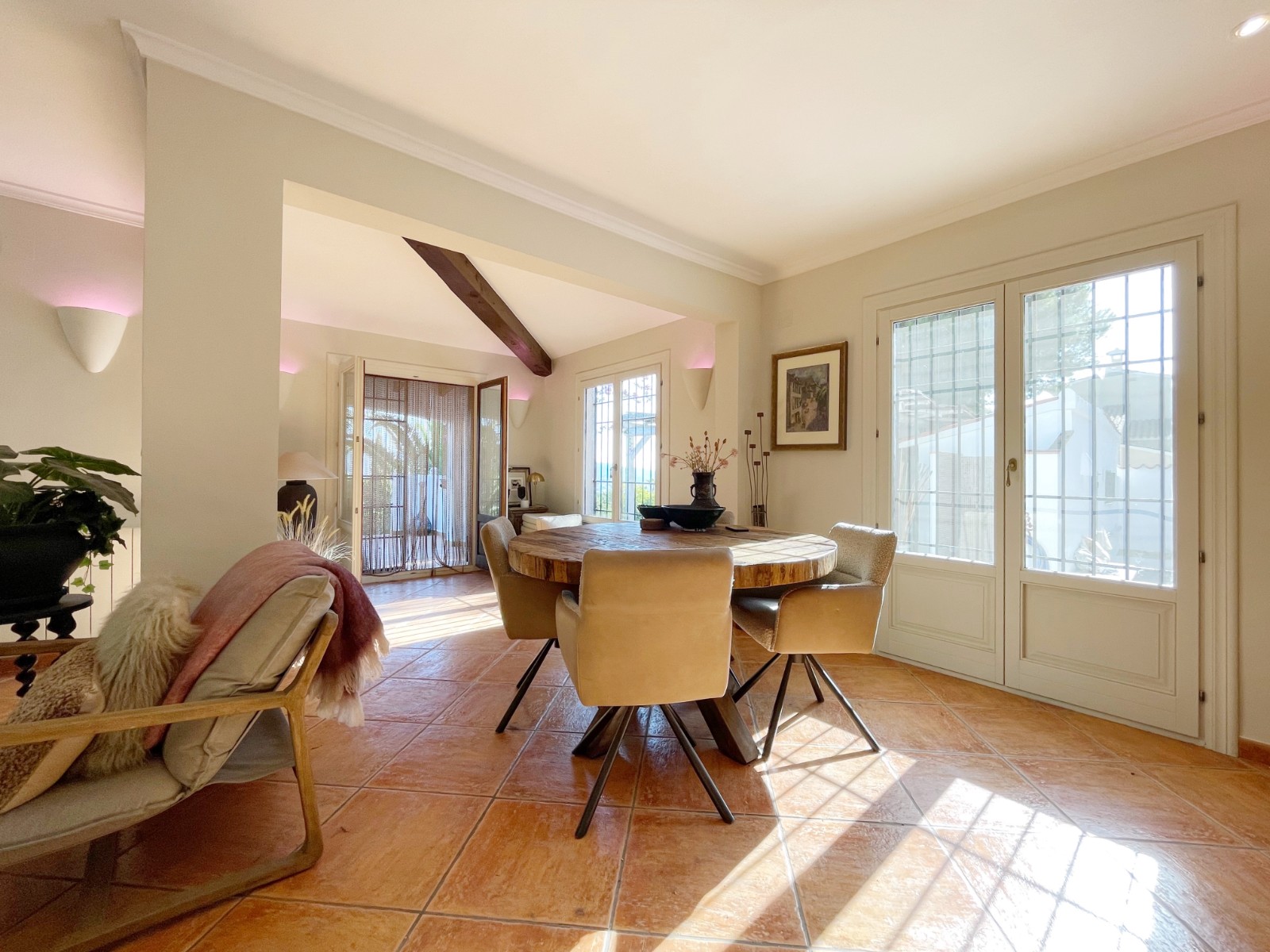 Gezellige villa gelegen in een rustig gedeelte van de gewilde wijk Benimeit van Moraira. Rondom de woning vinden we, naast natuurlijk het zwembadterras, diverse terrassen met zitjes en loungehoeken in zon en schaduw, waarvan meerdere ook voorzien zijn van schitterende pergola’s. De tuin is heel mooi aangelegd en schept een hele fijne sfeer, de mooie uitlichting doet daar ’s avonds nog een schepje bovenop. Tevens loopt men vanuit de schitterende houten toegangspoort aan de achterzijde zo direct de natuur tussen Moraira en Teulada in, tegelijkertijd zit men ook in maar 6 autominuutjes in hartje Moraira centrum . Er bestaat de mogelijkheid de woning verder uit te breiden en zelfs het splitsen van het kavel in 2 grondstukken behoort tot de mogelijkheden.